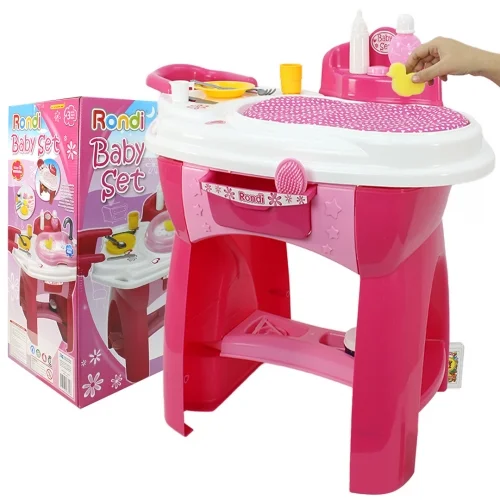 Centro de cuidado que permite al niño dar de comer, bañar con agua, cambiar y arreglar a su muñeco.
