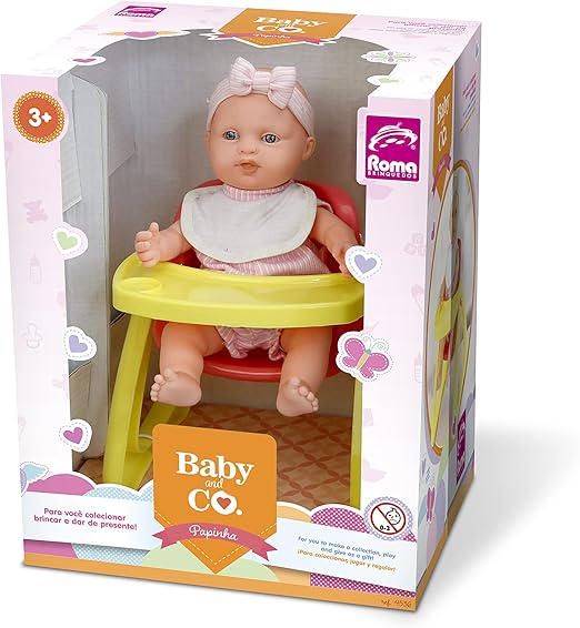 La muñeca Bebé Roma con Sillita Para Comer es educativa, divertida y despierta emociones reales.