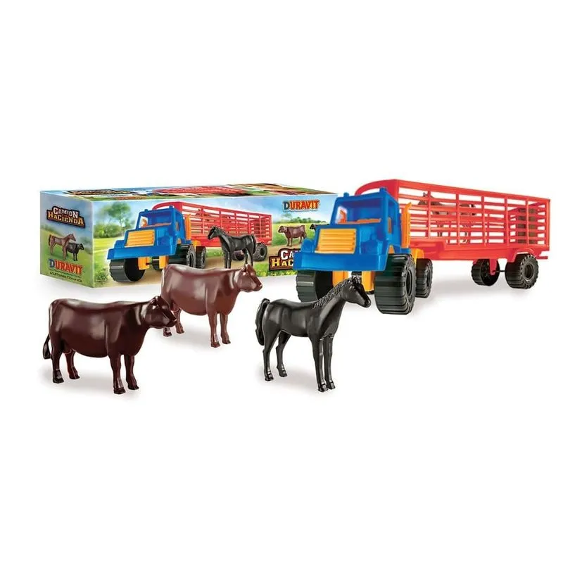 Camión para transporte de hacienda con semi acoplado y animales para transportar