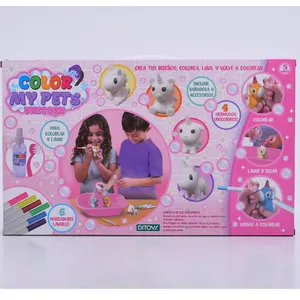 Contenido: 6 marcadores de color lavables, 4 Unicornios para colorear, 1 bañadera, accesorios para lavar la mascota (cepillo y envase atomizador) Material de las mascotas flock.