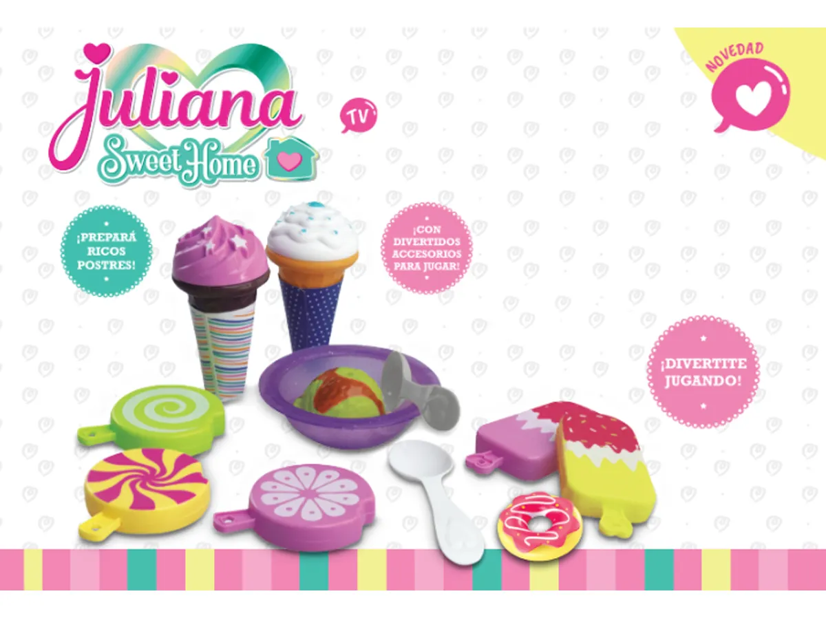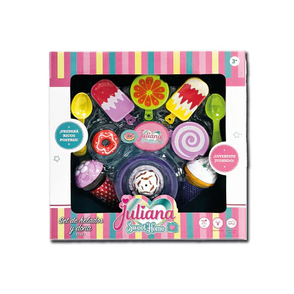 Prepara ricos postres con este divertido set con accesorios para jugar. El set de helados y dona de Juliana estimula los juegos por imitación, ayudando a desarrollar la imaginación y la cognición de las niñas y niños.