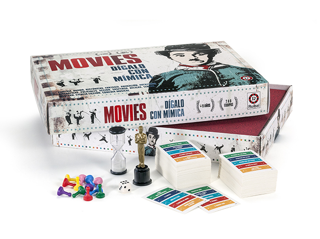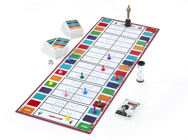 - Contiene: 1 tablero, 12 peones plásticos, 1 dado, 256 tarjetas (con 1280 títulos de películas), 1 reloj de arena, 1 Oscar, 1 reglamento.