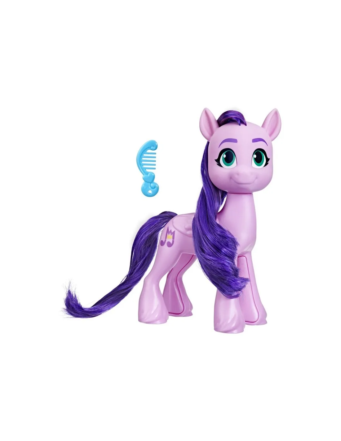 Conoce a la Princesa Petals: ¡una pegaso de los Altos de Céfiro! La Princesa Petals es una princesa y estrella del pop con mucho estilo. Imagina que vive grandes aventuras con esta figura de Princess Petals, inspirada en la película «My Little Pony: A New Generation». Incluye la figura de Princess Petals, que mide 20 cm, para recrear grandes momentos de la película. Esta poni rosada tiene una larga y suave melena morada. Viene con un peine para cepillar su melena y su cola. La figura tiene una nota musical como cutie mark en un costado.