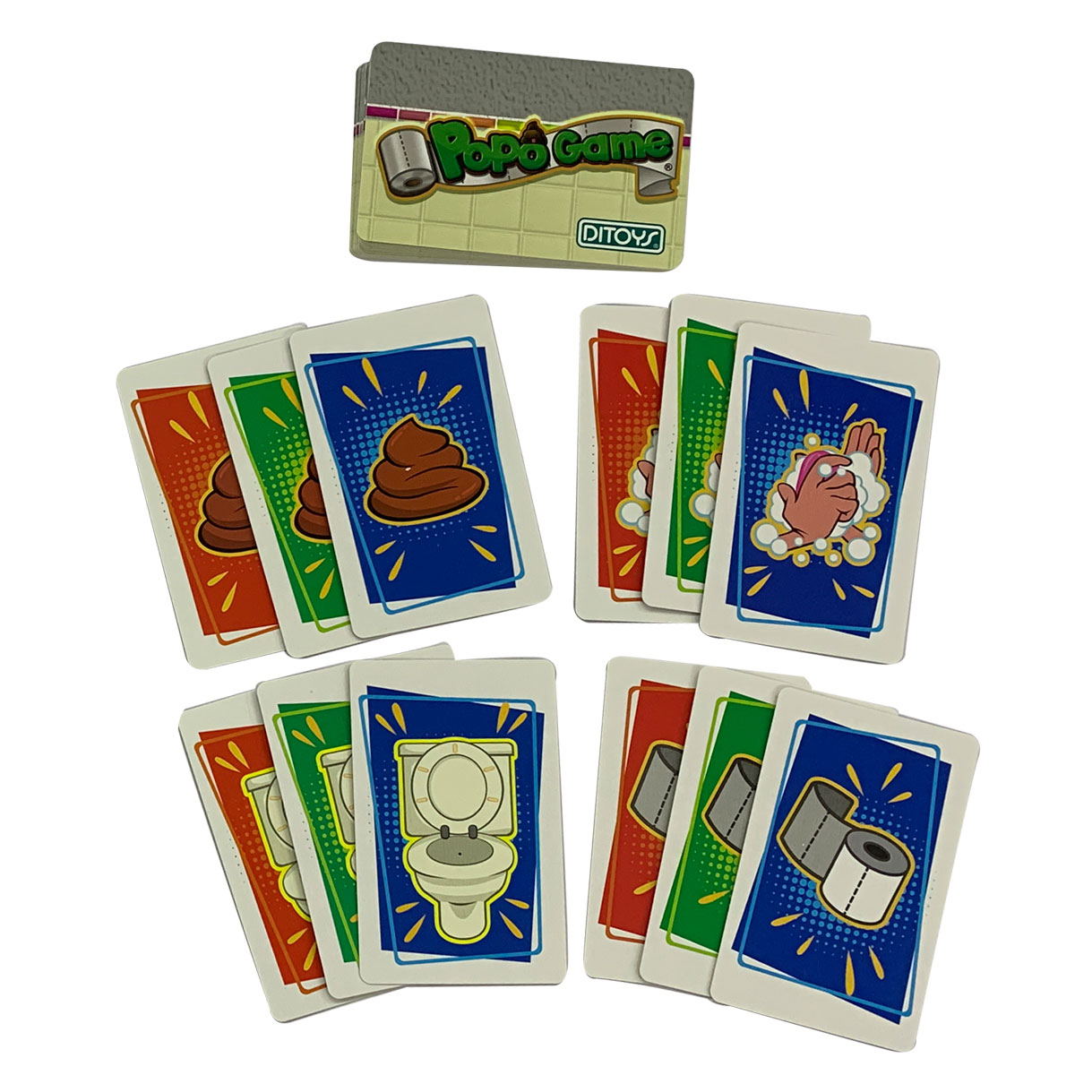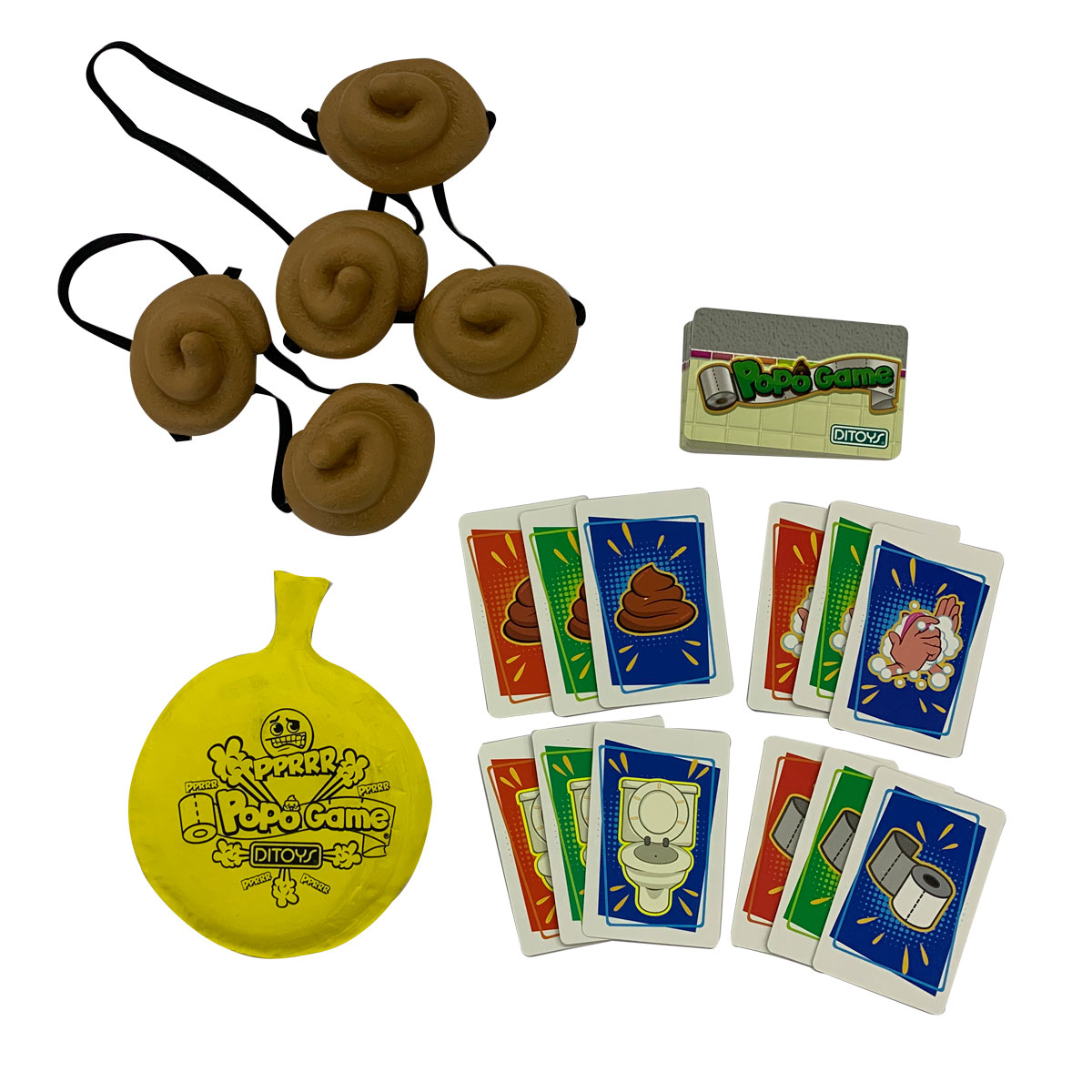 • Contiene: 5 popó con elástico, 1 popó cushion, 48 cartas, 1 hoja de instructivos.
