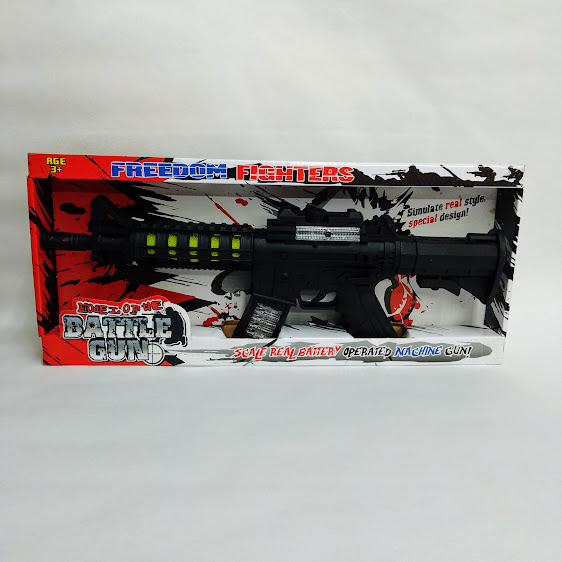 El rifle Battle Gun está pensado especialmente para aquellos fanáticos de la acción y los juegos de roles. Con su diseño resistente y sofisticado, le dan más espacio a la imaginación del niño. Cuenta con un sistema de luz y sonido que brinda una experiencia única de juego.