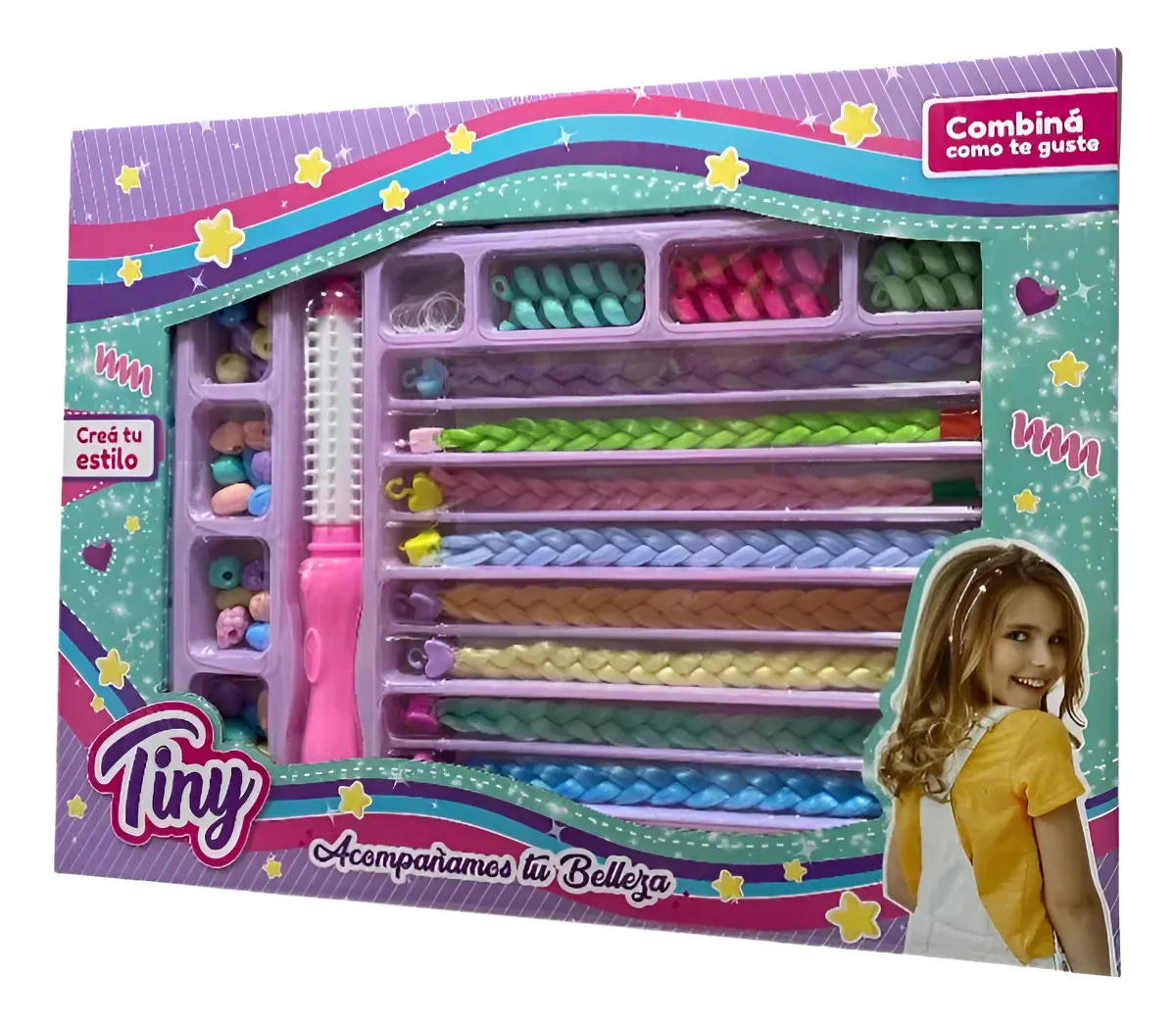 Descubre el ‘Juego De Belleza Extensiones Pelo Trenzas Bijou Mostacillas’, un set diseñado para que los más pequeños de la casa exploren su creatividad y estilo personal. Este increíble set tipo trenzador incluye un trenzador, 8 trenzas de colores vibrantes, diversas mostacillas, apliques divertidos y gomitas elásticas, ofreciendo múltiples combinaciones para decorar el cabello. Ideal para niñas a partir de 5 años, este kit no solo es divertido, sino también hipoalergénico, asegurando un uso seguro.