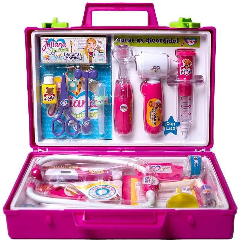Set completísimo para jugar a ser doctoras. Trae instrumentos con luz para que la diversión sea única!