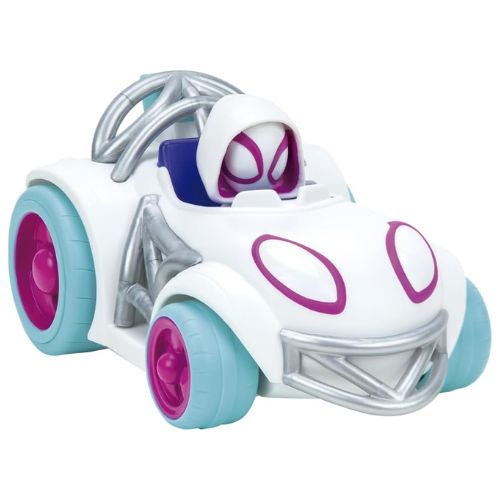 Disfruta jugar con los vehículos de Spidey amazing friends, modelos para jugar y coleccionar. El vehículo tiene el tamaño adecuado para manos pequeñas. la figura no se quita del mismo.